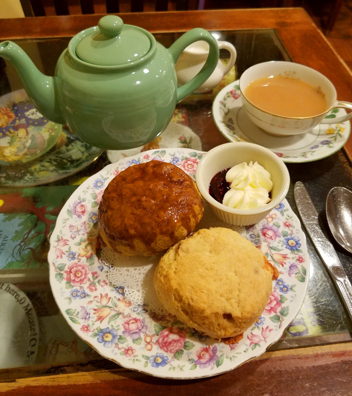 Everything was really lovely. Alice’s Tea is a great blend of flavors. The scones, along with the accompanying dish of cream and jam, far surpassed my expectations.