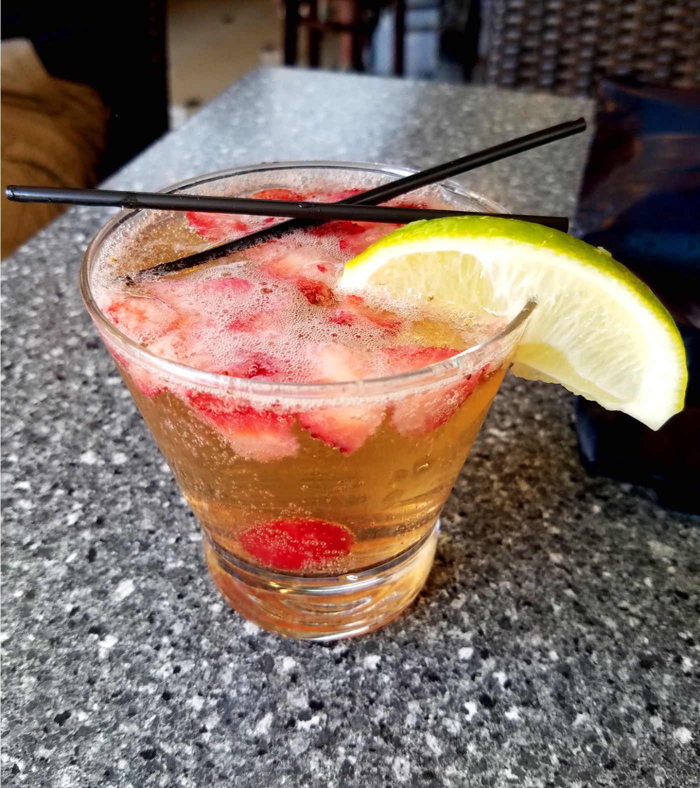 After some hemming and hawing, I decided to splurge and order a discounted specialty cocktail called the Bourbon Strawberry Smash to enjoy with lunch. It predominantly consisted of Jim Beam Black Bourbon, club soda, strawberries, etc., blending bitter with sweet really well. Given Playwright’s high prices, I confess I would have stuck with water had the cocktail not been discounted as a lunch special.